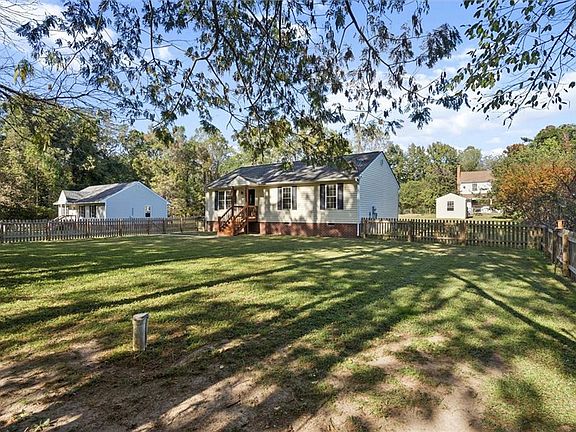 Located near the end of a quiet cul-de-sac in the Barhamsville area of eastern New Kent County (Lanexa address), this well-kept ranch offers comfortable one-level living on almost half an acre. Step inside to find luxury vinyl flooring throughout, an open living area, and an eat-in kitchen with solid wood cabinets and a pass-through to the living room. With three bedrooms and two full baths, the layout is practical and easy to maintain. Outside, the home features a front picket fence, a detached shed, and a paver patio that’s perfect for outdoor dining, gardening, or relaxing. No HOA fees and served by New Kent schools. Conveniently located approx. 3 miles north of I-64 Exit 227 (Toano/West Point), just 15 miles from Williamsburg, 7 miles from West Point, and 39 miles from downtown Richmond, offering an easy commute and quick access to restaurants, shopping, and everyday amenities.