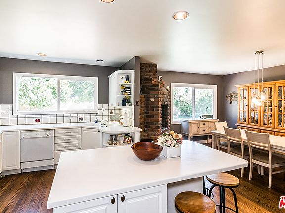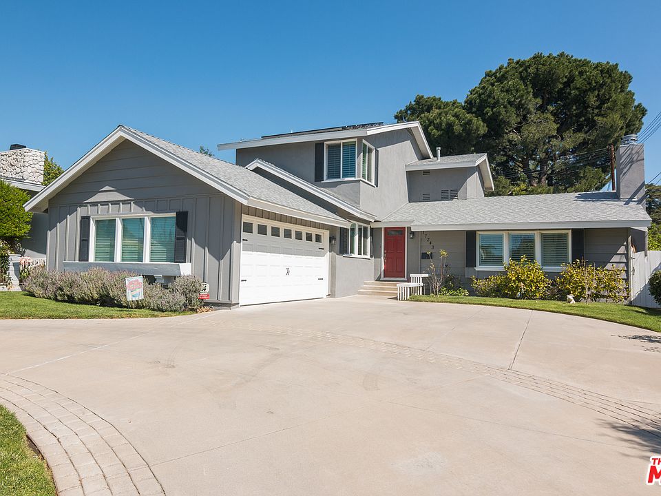 This gorgeous Granada Hills pool home has it all! Located in one of the most desirable areas this picture perfect home welcomes you with a circular drive way, manicured lawn, and newly painted exterior. There is an open floor plan with a large kitchen that features a center island, bay window, and a beautiful wood burning brick fireplace in the dining area. The large formal living room features another fireplace, recessed lighting, plantation shutters, with a sun room that allows views of the pool and back yard. The back yard is perfect for entertaining and also has an eating area, grass, and a fruit tree. There are 3 bedrooms upstairs with a large bathroom and 1 bedroom and bathroom downstairs. There is direct garage access, a service porch for extra storage and laundry area. Newer roof, central HVAC, owned solar panels and located in the coveted Granada Hills Charter High School District. A family and entertainer's dream home!