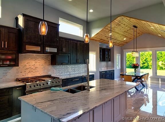 Welcome to 17243 South 21st East Avenue in Mounds, a home made to impress and built to last. This 4-bedroom, 4.5-bath contemporary masterpiece in Spring Hill Farms offers high-end living space that’s as functional as it is beautiful. From the circle drive to the expansive 3-car garage with a tandem drive-thru bay for extra vehicles, trailers, or toys, every detail is designed for ease and style. Inside, soaring vaulted ceilings, hand-scraped white oak hardwood floors, and a striking Italian porcelain fireplace set the tone. The chef’s kitchen inspires gatherings with marble countertops, commercial-grade appliances, and custom cabinetry that makes cooking effortless. Each bedroom has its own private bath, while the primary suite delivers a spa-level retreat with roll-in accessibility for comfort now and in the future. A massive safe room, located in the closet next to the mudroom, adds peace of mind without taking away from the home’s elegance. Entertaining is easy with a covered patio, balcony, and a wet bar that brings guests together in style. Premium touches like insulated windows, dual HVAC systems, tankless water heating, and full cable/internet wiring bring peace of mind to match the beauty. Nestled on over half an acre in a quiet HOA community, this property is also part of the sought-after Bixby School District — adding even more to its long-term value. Now offered at a reduced price of $874,900.