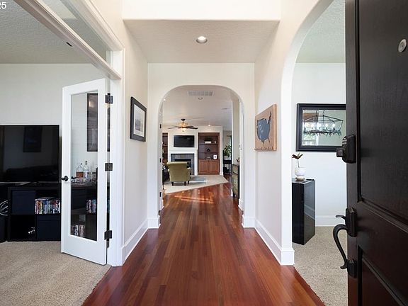 Welcome to this beautifully maintained 3-bedroom, 2.5-bathroom home located in the highly sought-after Edgewater on the Tualatin neighborhood. With a versatile layout and timeless design touches throughout, this home offers both everyday functionality and luxurious comfort. Step inside to find a dedicated office/den with French doors—perfect for working from home or a quiet reading space. The formal dining room is ideal for entertaining, complemented by a convenient butler’s pantry that connects seamlessly to the expansive kitchen. Measuring 19' x 12', the kitchen features generous counter space and flows into the main living area, making it a true heart of the home. Upstairs, the spacious primary suite offers a peaceful retreat, complete with a cozy gas fireplace, a private bonus room/library, dual vanities, a soaking tub, walk-in shower, and a large walk-in closet. Two additional bedrooms, a full bathroom, and laundry room complete the upper level. Enjoy the outdoors year-round with two charming outdoor spaces: a private patio and a main-level deck—perfect for morning coffee or evening relaxation. This home also features a two-car garage with EV Charging + a backup generator.