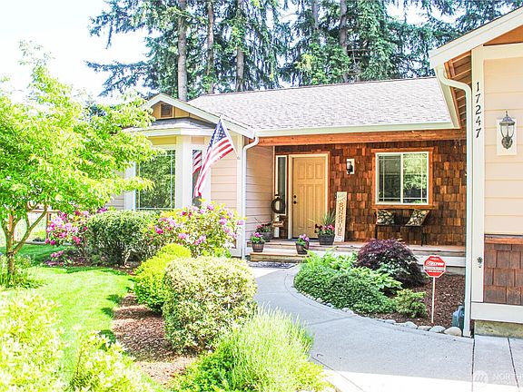 Looking for a rambler in sought-after Scenic Shores, here it is! The owner has much pride and care into this home with wood wrapped windows, an open living area to the kitchen with granite countertops, and an island to enjoy. This home features 3 bedrooms, 2 full baths, 1,579 sq ft floor plan that makes sense. Vaulted kitchen ceiling with skylights, the master bedroom has an ensuite with a soaking tub, and access to the back patio with a hot tub. A large garage, heat pump for heating & AC, fully fenced back yard, and a large open side yard. The landscaping is beautiful with lots of color and foliage. Access to a private 7-acre park on Lake Lawrence, which includes a boat launch, tennis courts, playground, & more. Quick commute to JBLM.