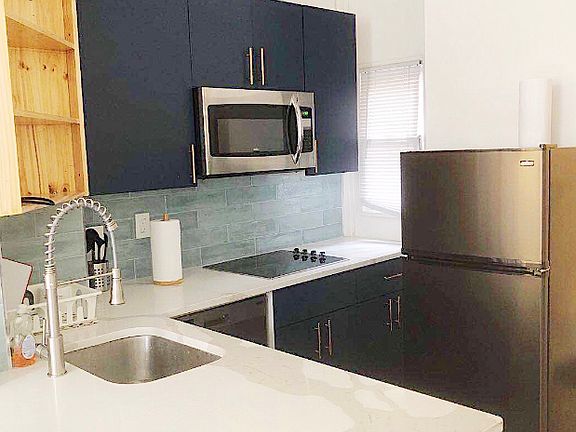 Bright and modern studio apartment located on Bainbridge Street in the Graduate Hospital neighborhood. The unit features an open floor plan with hardwood flooring, a sleek kitchen with quartz countertops, tile backsplash, and stainless steel appliances. Large windows bring in natural light, and the bedroom offers a spacious closet with plenty of storage. The updated bathroom includes a tiled tub/shower with a rainfall-style fixture.