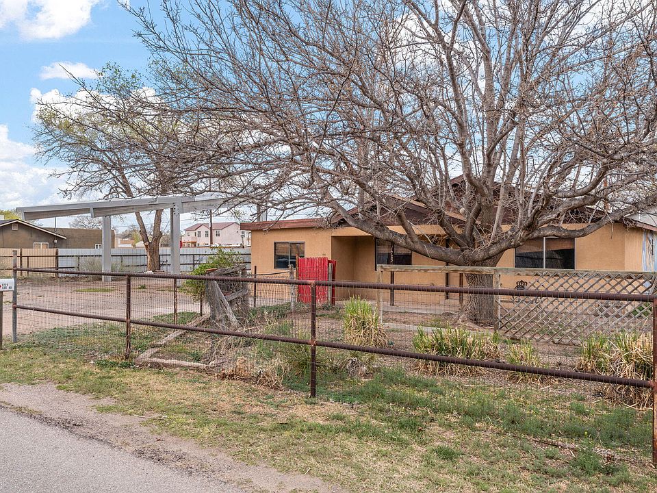 Welcome to your dream oasis in the heart of Albuquerque's South Valley. This charming pueblo-style home boasts 4 bedrooms and 1.75 bathrooms, offering ample space for comfortable living. Step inside to discover a spacious living area and a warm and inviting interior kitchen, adorned with traditional southwest accents and charm. The heart of this residence lies in its fully solar-powered design, ensuring sustainability and efficiency for eco-conscious living. Situated on a generous half-acre lot, with endless possibilities, your labyrinth for relaxation and enjoyment awaits. You could embrace the joys of gardening, or poultry farming which additionally compliments the homestead vibe. This home offers easy access to amenity options, while still maintaining a sense of peace and tranquility.