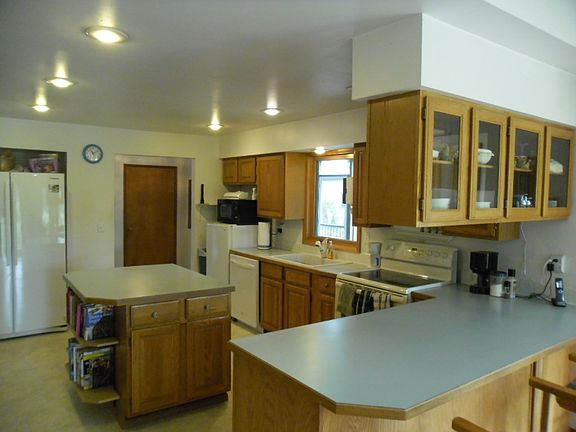 Very Nice Country Home on 10 acres on paved road. 4 bedroom, 2 bath, 2682 square feet to enjoy. Big spacious kitchen with island. Wood stove in living room. New carpet 2012, appliances 2012, Furnace and AC installed 2003, New Roof 2013, New windows/siding 2012, New Elec Panel 2004, New 40x24 Shop/Sewing Room 2004, All Appliances stay, Partial Basement with workbench, Property is all fenced, Well is 3.77 gpm and has been adequate for household use. Oil forced air furnace with AC. Screened in porch.