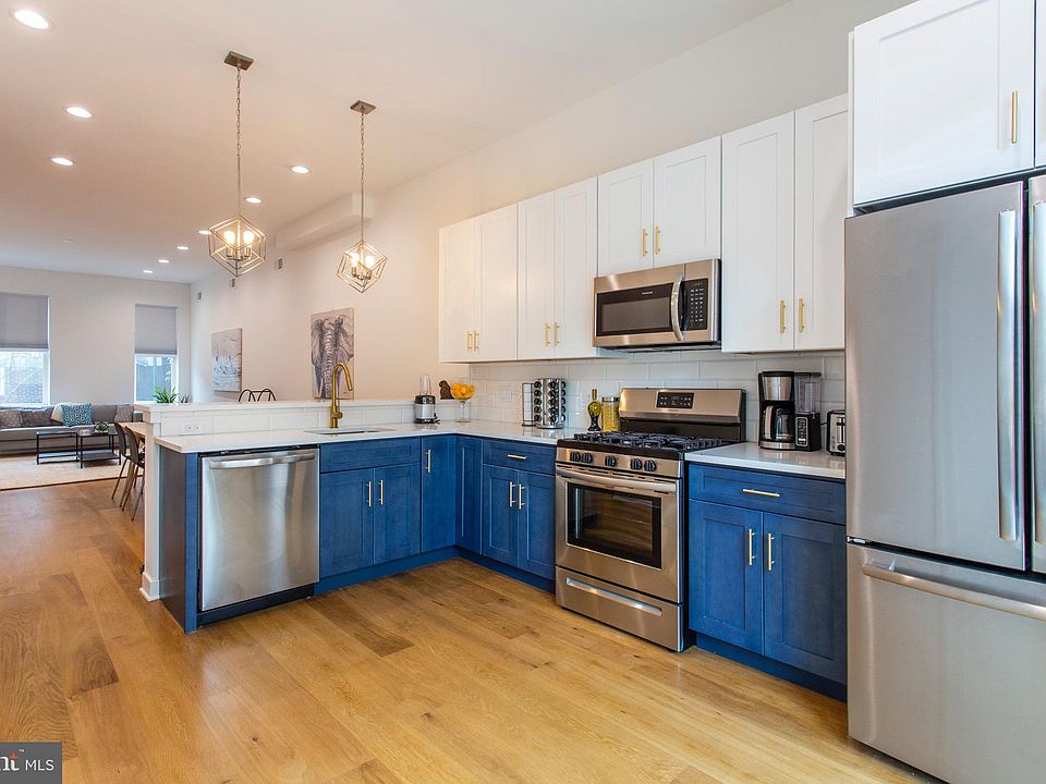 Month-to-month or long term rental available now! New immaculate townhome with all the bells and whistles! High-end finishes throughout; no expenses were spared on this home. From the chef's kitchen to the cozy living room to the roof deck with sweeping city center views, your stay here will not disappoint! Close proximity to University City, Downtown, the Airport, Convention Center and much more! This is a brand new, family friendly townhome located in the Point Breeze neighborhood of Philadelphia. The first floor features a large living room, dining area and huge chef's kitchen. Attached to the kitchen is a sliding door to the patio and grill area. On the second level there are two bedrooms. The first bedroom has a queen size bed and an en suite bathroom. The second bedroom has two twin beds. There is an additional full bathroom in the hallway. The third floor is the master suite. It has a king size bed, chaise lounge, and luxurious shower.Go up one more level and you will find the roof deck with sweeping city center views.