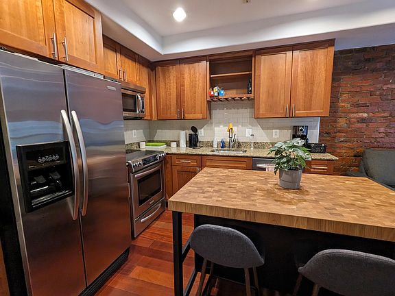 Exposed brickHardwood floorsStainless steel appliances