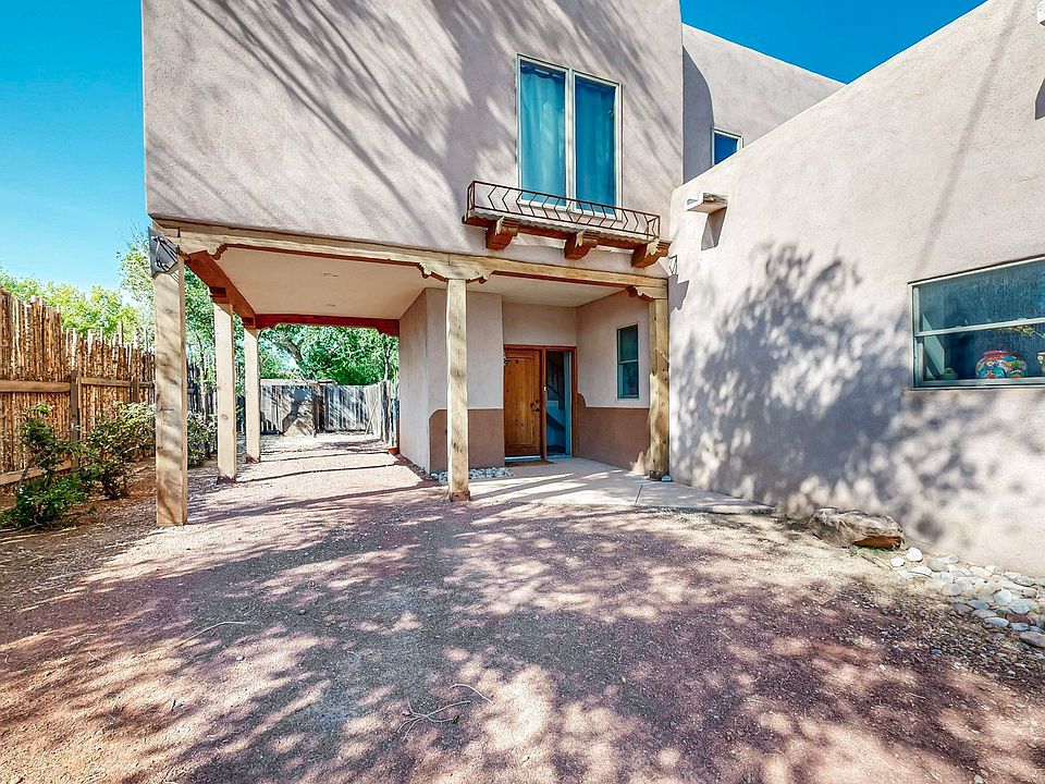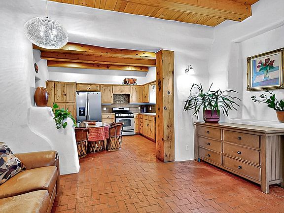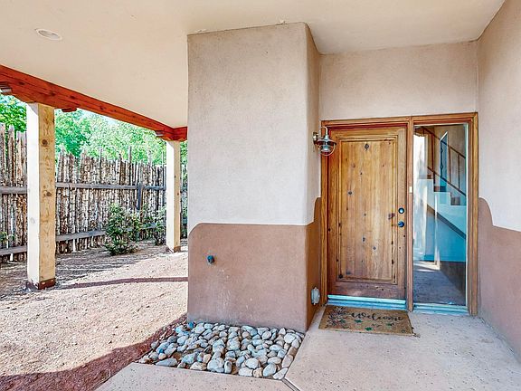Lovers of history and charm, rejoice! This pueblo style home in historic Los Griegos Neighborhood is not like the other homes. Authentic thick adobe walls and brick floors welcome you in and flow to a stunning prominent kiva fireplace that is the beating heart of this quintessential valley dwelling. While the bones of the home boast historic charm, it features many modern upgrades including a warmly updated kitchen with a patio for indoor/outdoor eating. The primary bedroom w/ large ensuite bathroom is conveniently located on the first floor. Up the stairs you'll find a light filled loft with space for a reading nook or second living space as well as the large second bedroom/bathroom and dedicated separate office/work-from-home space. Come see something special before it's gone.