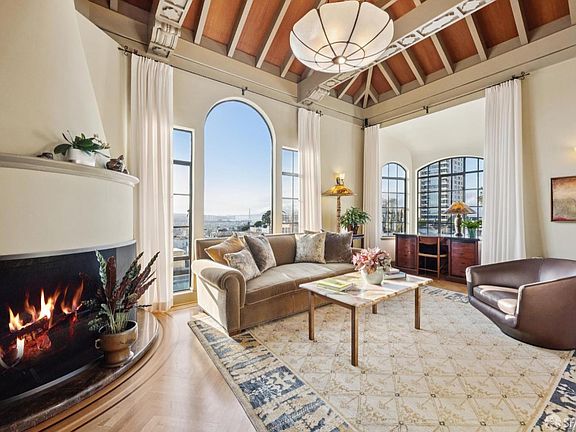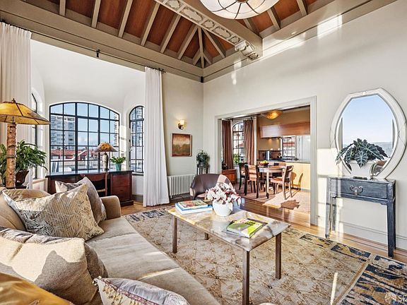 Experience the very best of San Francisco living in this stunning top-floor view condo perched in the heart of Russian Hill, offering an extraordinary blend of charm, sophistication, and cityscape beauty. A 1,000+ sq. ft. private roof deck showcases panoramic views of the Golden Gate Bridge, Twin Peaks, and Downtown, creating a magical backdrop for entertaining or quiet relaxation. Set within a classic 1920s Mediterranean-style building, this rare residence combines timeless architectural detail with thoughtful modern updates. The spacious 2BD/1BA, approximately 1,250 sq. ft. home features vaulted ceilings, herringbone-pattern oak floors, and box-beam detailing in both the dining and living rooms, exuding warmth and character at every turn. Both bedrooms are generously sized and inviting, the kitchen offers ample space for cooking and storage, and the ideal 2BD floor plan provides effortless flow and natural separation between living and sleeping areas. With windows on all sides, the home is flooded with natural light and offers views from nearly every room. A private garage with EV charger and storage, plus shared laundry on the ground floor, complete this exceptional Russian Hill gem blending classic elegance and iconic San Francisco views.