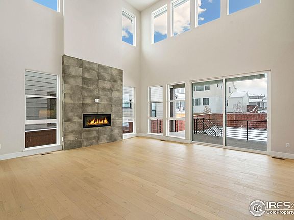 Don't miss the opportunity to own our popular Plan 6 by Trumark Homes in Sugar Hills @ Raindance; the last in a hard-to-find cul-de-sac! This contemporary two-story home with Modern Prairie elevation and an almost 1,000 sqft oversized garage offers 2,875 finished sq. ft. of living space with five bedrooms and four baths on a 8,837 sq. ft lot that is fully landscaped and fenced. The home features an inviting porch with a secondary bedroom and bathroom off the front of the home. Beyond the entrance hall is the great room with fireplace and 20' ceilings, a flex office and the gourmet kitchen featuring a spacious walk-in pantry and a center preparation island that overlooks the light-filled great room. The kitchen includes 42" deluxe fog stained shaker cabinetry, New Venatino beige quartz countertops with tile backsplash, Beko stainless steel appliance package with a 5-burner gas cooktop, a convection oven, a built-in microwave, and a dishwasher. Double sliding glass doors off the dining and great rooms open to a beautiful covered deck and a spacious backyard. Upstairs you'll find a loft connecting the three secondary bedrooms, one with an ensuite bath. The primary suite offers a stunning, spa-like bathroom with dual sinks, a walk-in shower, and a freestanding tub. An expansive walk-in closet completes the primary suite. The home comes with extensive 5" engineered wood flooring in the entry, kitchen, dining and great room, luxurious carpet in bedrooms, deluxe primary shower tile with mosaic tile shower pan, spacious 10-foot ceilings on the main floor and 9' on the upper floor and basement, tankless water heater, dual A/C, insulated steel garage door, and much more! Neighborhood amenities of walking trails, orchards, non-potable water and trash, are included in your metro district fees. Membership to the Raindance pool is optional and currently $499/year; there are also other membership options combining amenities in Raindance and nearby Water Valley - "WaterDance"!