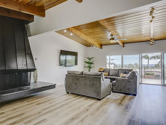 WELCOME TO THIS GORGEOUS, RECENTLY RENOVATED HOME IN PACIFIC BEACH! With 4 bedrooms and 3 bathrooms, this property offers contemporary luxury just minutes away from the beach. Step inside and you'll be greeted by an inviting open-concept living area, leading to the beautifully remodeled entertainer's kitchen equipped with high-end stainless steel appliances and upscale finishes. Enjoy the stunning vistas of the San Diego Bay, Seaworld fireworks, glorious sunsets, and the downtown San Diego city skyline right from your kitchen. The kitchen seamlessly transitions to the dining and living areas, extending to the expansive outdoor deck, blending indoor and outdoor living. Upstairs, the master bedroom and two additional bedrooms provide a tranquil retreat. On the lower level, you'll find an additional master bedroom or versatile gameroom, opening up to the lush backyard. Throughout the home, you'll be captivated by quartz countertops, custom tile work, two wine refrigerators, high-end wood laminate flooring, new windows, and high ceilings, creating an atmosphere of sophistication.The multi-level design offers a light, bright, and airy feel, embodying the essence of Southern California's indoor/outdoor lifestyle. Step outside to the backyard oasis, complete with a private pool, bar area with a sink, BBQ, wine fridge, and ample space for leisure and relaxation. This home is an entertainers delight, or an excellent vacation rental property. Don't miss the chance to experience this extraordinary property and make it your own!