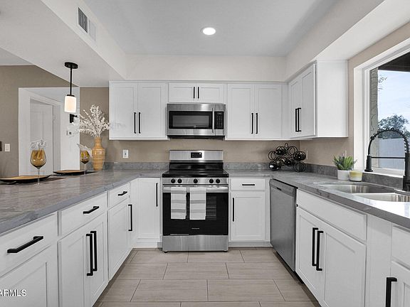 UPGRADES GALORE!! This lovely 3-bedroom, 2-bath patio home has enjoyed a full remodel. Check out the new dual pane windows and the newer high efficiency HVAC (2023) both which will help keep summer cooling bills low. The new kitchen features new appliances, new cabinets and hardware, sinks & faucets with new quartz counter tops. Flooring is ceramic tile with new carpet, trimmed with trendy higher base boards. The doors, trim and hardware have all been replaced in keeping with current styles. Upgraded new lighting and ceiling fans were added/replaced in every room. Both the Guest and Master bath feature new vanities, mirrors and lighting. Euro-Style bath and shower fixtures compliment the ceiling height ceramic tile shower enclosures and capped off with a ''walk-in'' Master Shower.