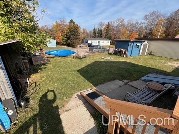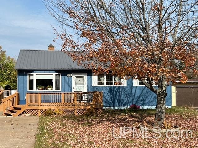 Welcome to this well maintained ranch style home in Ishpeming township! Offering 3-4 bedrooms ( 4th bedroom is non-conforming) and 1.5 baths, this home is designed for convenience and comfort. The main floor features Cherry stained hardwood floors in the living room, hall and bedrooms, a wheelchair accessible full bathroom, and a cute kitchen with a pass through serving window to a large, bright dining room. The freshly painted exterior looks great, along with new exterior doors. A metal roof provides peace of mind, while the fenced backyard is perfect for outdoor enjoyment with a lean-to, garden shed, fire pit and two freshly painted decks... one with a wheelchair accessible ramp. There is even a ramp for your aging dog! The enclosed back porch is perfect for additional storage and you could possibly bring the washer and dryer to this area for main floor laundry. The basement offers a family room complete with a snap together rubber floor, ideal for a home gym. You'll also find ample storage and an super workshop with outdoor access via Bilco doors. Additional highlights include a newer Bryant Energy Star furnace, new basement windows, and a half bath located next to the fourth bedroom. Call your agent today to make an appointment to see this cute home.