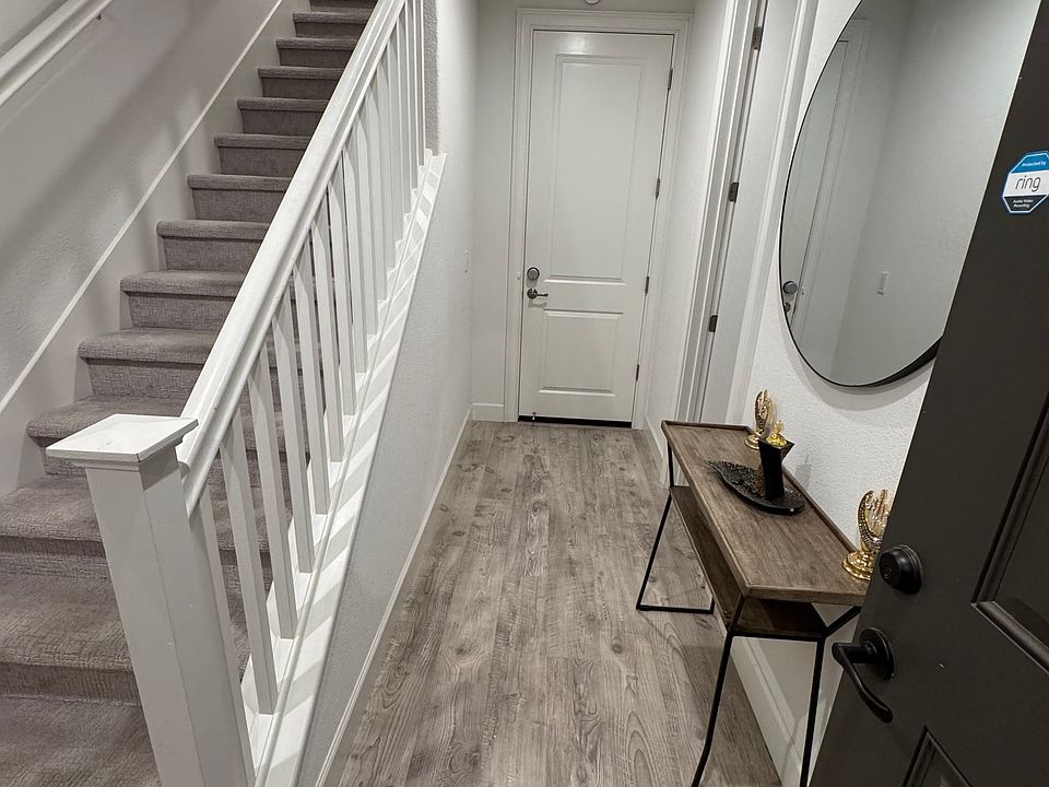 This beautiful Modern and Smart, Solar powered 2022 built townhome offers 4 bedrooms, 3.5 bathrooms, and a 2-car garage, with 1,929 sq ft of space. Upon entrance through the front door, you will have a guest bedroom with attached full bathroom. On Second floor, there is a spacious living room and a lavish gourmet kitchen, a patio and a half bathroom - Perfect for entertaining guests! The third floor features a master bedroom with attached bathroom, walk in custom closet and room darkening shades. Second and Third rooms both have custom closets made. Third full bathroom, laundry room, laundry closet are all in the same hallway for privacy and convenience! The home faces North East and has modern luxury finishes. It also features solar panels, an EV charging station, and a cozy patio.