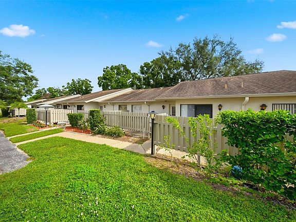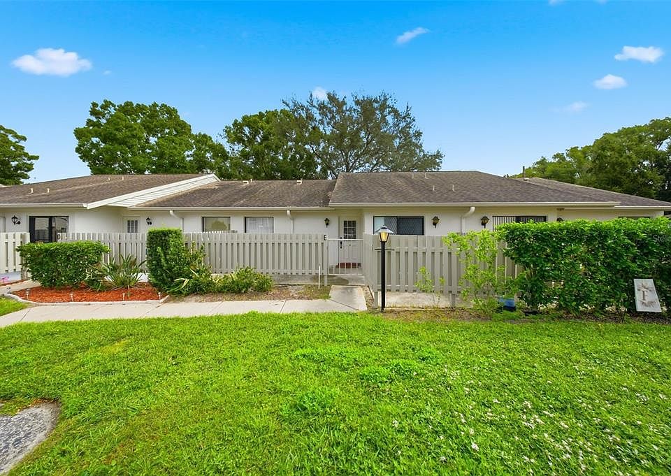 Welcome to this beautifully remodeled villa in the heart of Palm Harbor, perfect as a winter retreat or serene Florida getaway! This move-in-ready 2-bedroom, 2-bath home is nestled in the desirable 55+ community of Pine Ridge Villas and offers stylish upgrades and peaceful privacy with no rear neighbors. Step inside to find an open-concept floor plan with fresh interior paint, new flooring, and designer light fixtures throughout. The gourmet kitchen has been completely renovated with brand-new cabinetry, countertops, tile backsplash, and stainless steel appliances. Thoughtful touches include under- and over-cabinet track lighting, USB ports, a lazy Susan, and a lighted corner glass display cabinet. Both bathrooms are tastefully updated with granite countertops, custom wood vanities, new sinks, fixtures, and lighting. The primary suite features a walk-in shower, while the guest bath offers a tub/shower combo for versatility. Enjoy Florida’s beautiful weather on either your private fenced front courtyard or your screened-in back patio overlooking a tranquil greenbelt. A brand-new stackable washer and dryer are also included for your convenience. The villa is located in a non-flood, non-evacuation zone and experienced no damage from recent storms. Residents of Pine Ridge Villas enjoy fantastic amenities including a geothermal heated pool and spa, scenic walking paths around the community pond, shuffleboard, and a welcoming clubhouse with an active social calendar. Just moments away from the Valspar Champion Golf Course Innisbrook. Schedule your private tour today and experience the easygoing Florida lifestyle at Pine Ridge Villas!