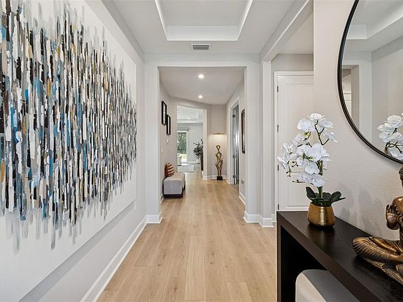 Professional epoxy garage floorsExtended covered lanaiBright open floor planCustom fabric window treatmentsPremium appliancesBeautiful two toned cabinetsWhole-house gutter system