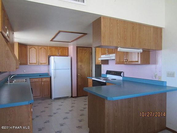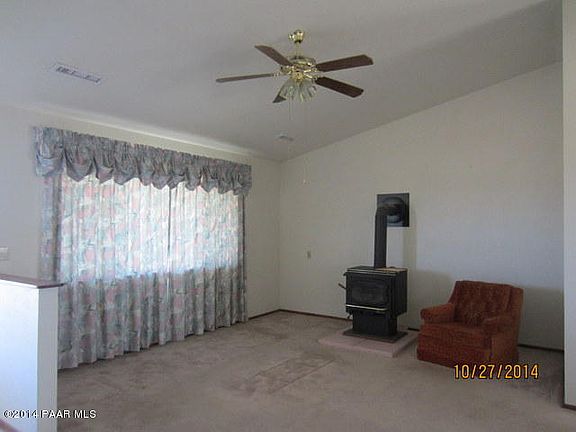 Lots of potential for this well built home. Block 3-car drive under garages have been partially converted to walk out basement or possible in-law setup. Duct work and heat installed downstairs and a half bath ready for a shower stall. Some carpentry work and you can add an additional 1300 square feet. Upstairs is move in ready with Arizona Room to enjoy your morning cup of coffee and Granite Mountain views. Beautiful views of the San Francisco Peaks from the front porch.