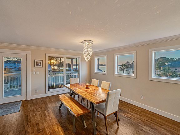 Water front view, without the water front price! Welcome to your new home, where sweeping bayou water views set the stage for everyday living. This home captures the charm of coastal living with tranquil 180 degree bayou vistas right from your porch. The natural lighting is sure to impress. Two large porches and inviting living spaces create a seamless connection between indoors and out. Step onto the main floor porch to take in the peaceful setting, perfect for morning coffee or evening gatherings, or take a nap in your hammock off the master bedroom porch after a long week. The large kitchen with an expansive island opens to the dining and living area. Whether you're entertaining or simply enjoying the view, this property offers a rare opportunity to experience the beauty of bayou-front living in the heart of NicevilleThe under-house parking provides flexible use and can easily be enclosed for added storage, a home gym, or a versatile workspace.