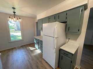 Townhouse apartment ready for move in! Entire apartment offers gorgeous new vinyl plank flooring! The main level features an updated half bath and large kitchen with refrigerator, range, and dishwasher included. Upper level has two bedrooms and updated full bath (primary with walk-in closet). Basement has plenty of room for extra recreation space and laundry room with plenty of storage. Access to a side deck for this unit and single stall garage (in community garage). Credit Score of 620 required. Tenant pays all utilities. Approved pets are allowed for additional Pet Deposit and $50/pet extra rent.