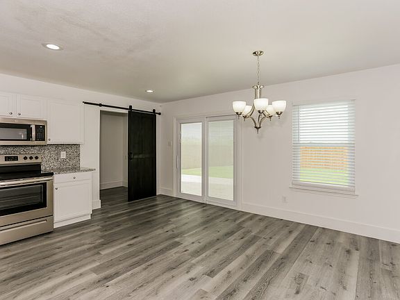 - Exterior features: 1 Story, Eat-in Kitchen, Granite Countertops, Large Backyard, Open Floor Plan, Smart Home, Stainless Steel Appliances