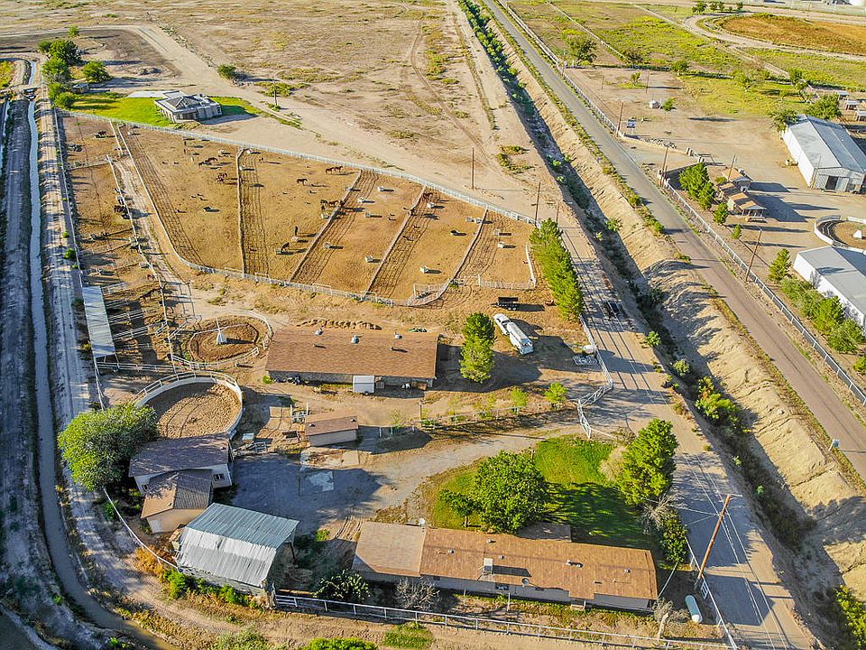 Horse Lovers Dream!! Gated 4.15 Acres, horse farm! Includes mobile home: Features 2 bedrooms, 2 bathrooms, Utility Room, Living Room, Kitchen, Double Car Port, 3 Car Detached Garage. Storage, 16 Stall Barn and 40' Round Pen Irrigation Righs! Two Wells, Septic Tank, Propane Tank Gas Owned.