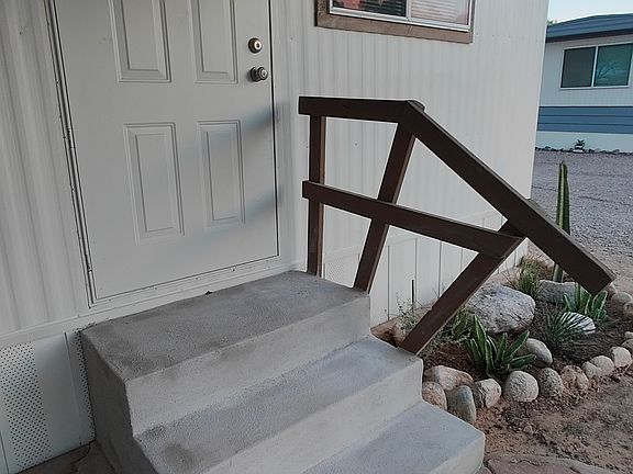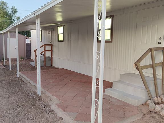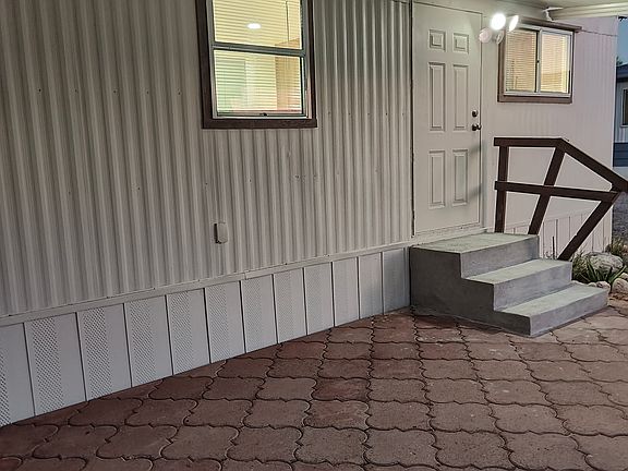 Completely remodeled mobile home with lots of storage, and many special details. Tile throughout, granite countertops in kitchen and bathroom with new cabinetry. The kitchen has a gas stove, microwave hood, large sink, lots of storage and easy flow for cooking. 1 bedroom that is large enough to fit a king bed, with a custom closet. Nice roomy bathroom with walk-in shower and storage closet for linens and extra supplies plus there's also a hallway closet. The exterior has an awning over patio and a storage unit. For heating and cooling there's two mini splits plus an evaporative cooler and all the windows are e-glass to be energy efficient.