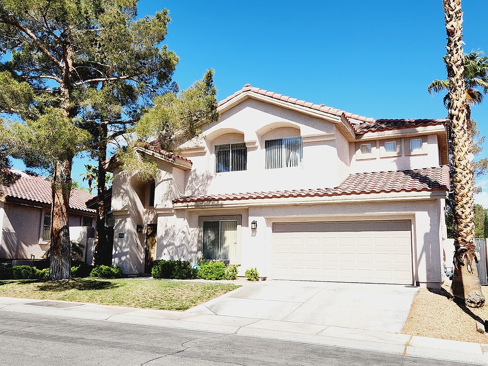 Location! Location! Location! this Beautiful 4 bdr two story home located in summerlin North across from desert shores lakes area 89128. convenient downstairs bedroom and downstairs standing shower bathroom and a separate laundry room. Spacious Family & living room downstairs each has a separate access to a cozy green and well maintained back yard with paved patio areas. Upstairs includes all other 3 bedrooms big Master bedroom with an additional den/ sitting / nursery area and a built in walk in closet plus two additional bedrooms. All major kitchen appliances and full size washer & dryer included.