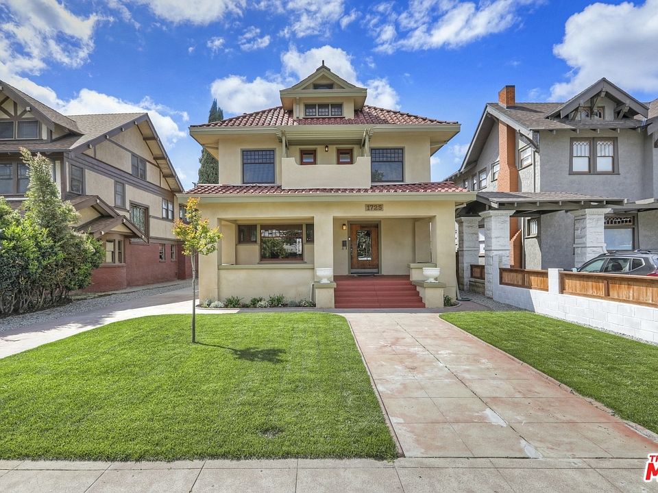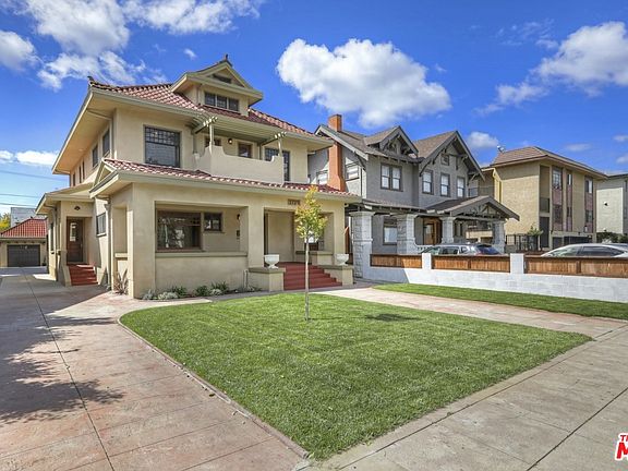 Grand 1907 eclectic Craftsman/Mission Revival home in popular Harvard Heights HPOZ! Extensive restoration just completed w/ permits (Feb 2020). Home is vacant -- Fresh, move-in condition! Original features include refinished oak trim downstairs, fireplace and china cabinet in dining room, hardwood floors. New 2-zone HVAC, upgraded plumbing and electric (200 amp service), retrofitted foundation, new bathrooms & landscaped yard. Entirely redone kitchen boasts great cabinetry, appliances, island, plentiful counterspace, bright breakfast area w/ French doors to rear deck. First floor bedroom/office. Upstairs, three of the four bedrooms open to outdoor balconies. Bonus original 3rd floor is finished space (c. 400 sq ft) but not included in total square footage. Two-car garage w/ workshop potential. Outstanding exterior restoration (see before and after photos, plus 1907 original newspaper illustration). Walkable to Alibi Coffee, walk/bike to Surfas, Spacio Salumeria, El Cholo and more!