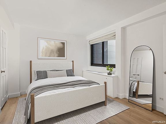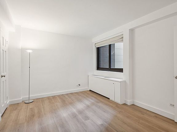 This large one bedroom apartment has a low monthly maintenance, brand new floors and baseboards, and is newly painted! In move-in condition, this is a rare find in one of Yorkville's most desirable full-service co-ops. This lovely, immaculate home has a gracious floorplan. Enter the bedroom from a long hallway that elegantly separates the living spaces and affords privacy. The large, west facing living room has been cleverly divided to create a good sized sleeping area or home office that can be closed off with pocket doors, from the spacious living room that accommodates a large dining table and separate seating area. The north facing bedroom, with open views, is generous and accommodates a king sized bed, and has great closet space, including a walk-in. The renovated kitchen features nickel tiles, ceramic floors, granite countertops, lacquer cabinets and new appliances. The bathroom has a marble floor and countertop and the sink is chic stainless steel. The apartment boasts 5 closets, including two walk-ins. There is additional built-in storage under the windows. With approximately 750 square feet, this is a great apartment at a great price!