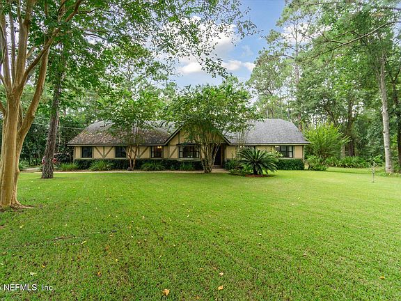 Tucked within the prestigious, gated Eagle Bend Island community, this charming 3-bed, 2.5-bath, 2,121 sq ft home sits on a sprawling 1.27-acre lot—offering the ultimate blend of privacy and convenience just minutes from city amenities. Step onto the massive covered back porch, framed by majestic pine and oak trees, and imagine sipping your morning coffee or hosting relaxed weekend gatherings surrounded by nature. With space for a pool and direct canal access—perfect for fishing and canoeing—this property offers both serenity and adventure. Built in 1982, this traditional-style home features timeless design, a two-car garage, and peaceful water views—ideal for families or buyers seeking a quiet, country-style lifestyle with easy city access. The parcel also includes cherry, blueberry, orange and lemon trees, as well as grape vines. Don't miss your chance to own this rare, nature-infused retreat in one of North Jacksonville's most exclusive enclaves!