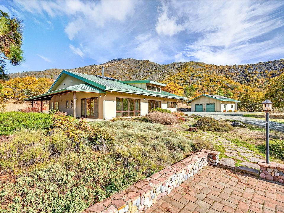 Discover the pinnacle of healthy & sustainable living in this Earth Advantage Platinum & N.W. Energy Star Certified Green home nestled on 19.53 acres overlooking the beautiful Applegate Valley wine country backing up to State Lands. Home is near several wineries, hiking trails, river sports & approx. 1 mile from Applegate store, a pub, fire station & a wonderful lodge Restaurant. Soaring vaulted open beam ceilings, 72 beautiful wood windows to let in the natural light throughout the home. Hardwood & Italian tile floors. The spacious open floor plan w/2544 SQ FT is meticulously designed by well-known Green architect & built by Gary Dorris w/geothermal heating & cooling, solar electricity w/extremely low energy bills. Year-round clean filtered air in high-tech climate control. Oversize 2 car garage/shop plus covered RV parking. Beautiful paver patio plus large covered patios to enjoy the outside views.