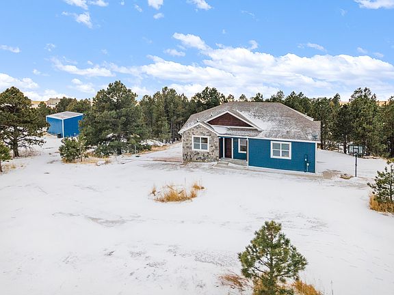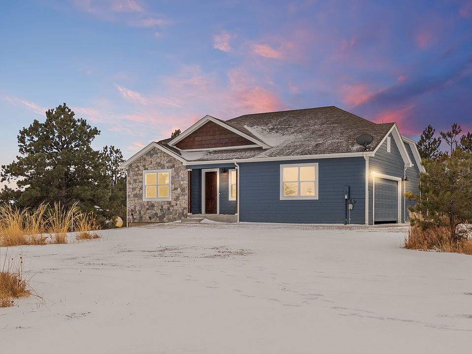 Spectacular views and wide-open country living are all included with this spacious 6-bedroom home on 16.57 acres! Welcome family and friends into this large ranch with open concept kitchen and living room with beautiful custom stonework on large central island and fireplace. Vaulted ceilings and large windows invite the great Colorado outdoors right into your living room. Details throughout including the built-in pantry, sliding barn doors and mudroom offer character combined with storage. Main floor features primary suite full of natural light with upgraded primary bath attached, 2 additional bedrooms and second full bath. Lower level includes secondary living space, 3 more bedrooms and full bath. Fully fenced property is animal ready including barn and chicken coop. Location is great for horse riding on the property and within the community. Property is mostly fenced in with 4 gates to access the rest of the property. This home has a modulating, ultra high-efficiency hydronic heating system with inverter-driven, ultra high efficiency heat pump cooling/heating, zoned system. With the combination boiler that provides heat and hot water on demand you won't have to worry about any chili Colorado night and always have hot water. Pictures do not show the hilly topography, the elevation change and the pictures all appear significantly more flat than actual elevations. Open House Saturday Feb. 12th 11am-2pm