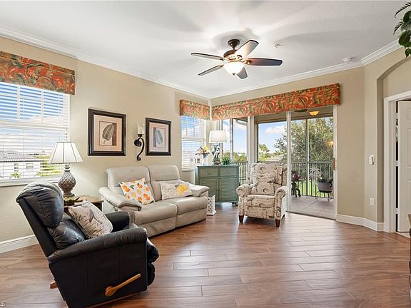 Tucked inside the quiet and well-maintained Acapulco Lakes community, this southeast-facing 3-bedroom, 2-bath corner unit offers low-maintenance living with stylish upgrades and thoughtful details throughout. Enjoy the peace of mind that comes with a brand-new 2024 roof and hurricane-impact doors and windows, while the open-concept layout and volume ceilings create a bright, airy space that lives large. The heart of the home features crown molding, a spacious living and dining area, and direct access to a private screened lanai—the perfect spot to enjoy your morning coffee or unwind in the evening breeze. Designed with everyday ease in mind, the attached 1-car garage includes a workbench area and ample storage, while all three bedrooms offer generous closet space—including walk-in closets with custom built-ins for maximum organization. Whether you’re looking for a full-time residence, a winter escape, or a smart investment, this beautifully maintained corner condo is the perfect place to enjoy the Southwest Florida lifestyle.