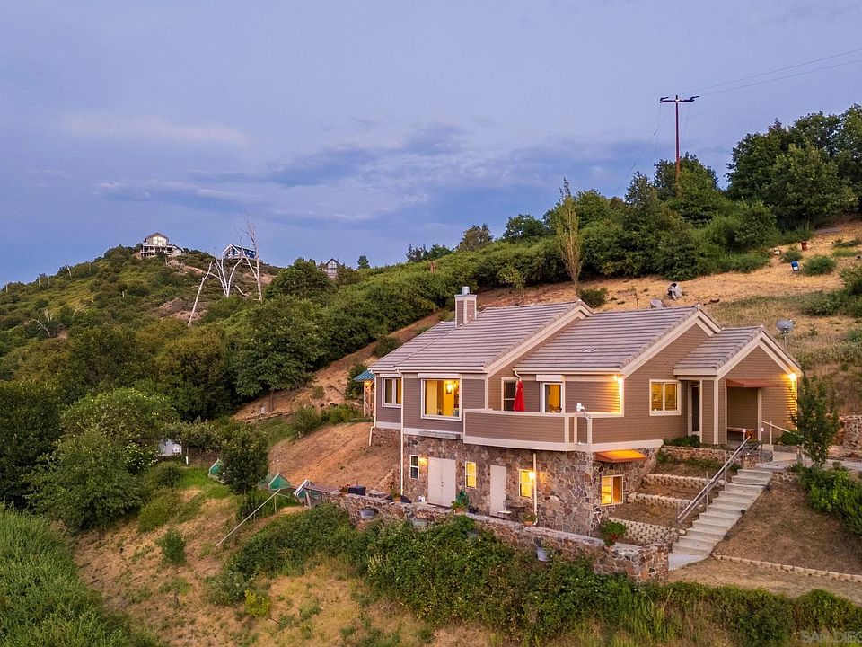 Welcome to this Julian gem of a home located in the nearby neighborhood of Harrison Park. This must-see custom home is lovingly designed and built under the supervision of an award-winning, prominent San Diego architect for his own family. This home was designed with an eye toward the aesthetic and with many defensible space features in mind. The Fire Chief thoroughly inspected the house from start to finish during the construction period. Upon entering, you will notice the open-plan living and dining area with a soaring nearly 20-foot ceiling height, custom cabinets throughout, hardwood and custom tile flooring, built-in bookcases, gas fireplace, oversized window seat framing stunning northward views of Volcan mountain, and others, granite countertops in the kitchen and bathroom, and tempered glass windows. The 1,555-square-foot upper level features an additional 120-square-foot loft used as an office and plenty of attic storage. From the spacious primary bedroom, you will enjoy another northern view from the oversized tempered casement glass windows. The bathroom features an oversized tiled shower, dual vanity sinks, and radiant heated floors. Also on this level is a separate laundry room with ample storage cabinets. *SEE SUPPLEMENT*