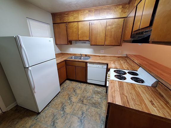 Upstairs unit features 2 bedrooms, 1 bath, central heat & air, stove, W/D connections and refrigerator.