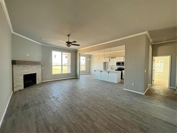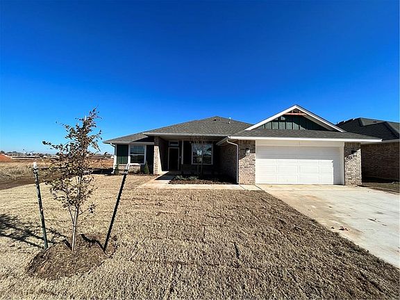 This new home smart design maximizes your usable space. The L-shaped kitchen combined with the island give you an increased amount of preparation space and allow for efficient workflow. The kitchen design includes polished features such as under cabinet lighting, a 5 burner gas range, granite tops, and wood look tile that flows across all of the main living area creating a great gathering space. The primary suite is separated from the other 2 bedrooms and office, enjoy endless hot water in the soaking tub or the separate tiled shower (hooray for tankless water heaters), or peruse your large closet. This home comes with too many energy efficient features to note, call to schedule an appointment to find out more! Residents of Farmington love the playground the community has as well as its close proximity to all things OKC metro. Short distance to Will Rogers Airport, the University of Oklahoma, Oklahoma City Community College, Hobby Lobby headquarters, Tinker AFB and so much more.