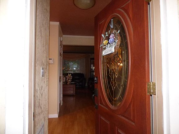 A charming home featuring 4 bedrooms, 2 baths, high ceiling and spacious living room, separate family room, open floor plan, upgraded kitchen with custom-made maple cabinets and granite slab counter, rounded wall corners, master suite with upgraded bathroom, baseboards and crown moldings throughout, laminate and tile flooring, double pane windows, alarm system, copper piping, beautiful backyard with covered patio, stamped concrete, small hut, koi pond with several koi fishes, rain catcher barrel and many fruit bearing trees. Situated near the Milpitas foothills, close to schools, shopping, restaurants and freeway access to 680.
