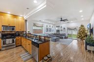 Welcoming front porchClean modern bathroomStainless steel appliancesGorgeous updated flooringFresh exterior finishesRecessed lightingBright open layout