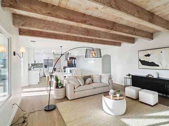 Welcome to this stunning, remodeled home offering 3,146 sq. ft. of elegant living space, featuring 5 spacious bedrooms and 3 luxurious full bathrooms. The open floor plan seamlessly blends modern design with natural light, highlighted by open beam ceilings that create a grand, airy feel throughout the home. The primary suite is a true retreat, complete with its own spa-like en suite bathroom, including a separate bathtub for ultimate relaxation. Downstairs, you'll find a full bedroom and bathroom, perfect for guests or extended family. On clear days, take in breathtaking ocean views that will leave you in awe. The property also offers beautiful, sweeping views of the surrounding neighborhood, making it an ideal spot to unwind or entertain. Don't miss the opportunity to own this beautiful, versatile home with both charm and functionality.