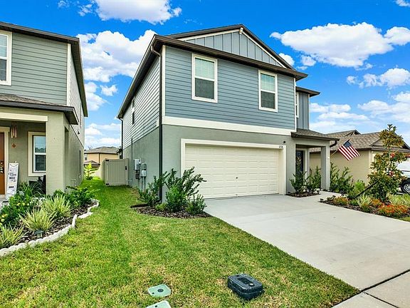 This spacious two-story home offers a contemporary open floor plan, with high ceilings & ample natural light. The spacious kitchen is perfect for entertaining with a gas stove, large island, and access to the dining & living room. Upstairs, you’ll find a versatile loft that can serve as a media room, playroom, or office, along with all four bedrooms and a full laundry room. The expansive owner’s suite features a spa-like private bathroom, dual sinks & a walk-in closet for the ultimate retreat. Additional upgrades include a fully fenced backyard with new vinyl fencing, gas appliances, and a tankless water heater for efficiency and convenience. Located in the sought-after Two Rivers community in Zephyrhills, residents enjoy access to family-friendly amenities, including a pool, playground, and scenic walking trails. Just minutes away, you’ll find premier shopping at Tampa Premium Outlets and the Shops at Wiregrass, entertainment at KRATE, and a wide variety of dining options.