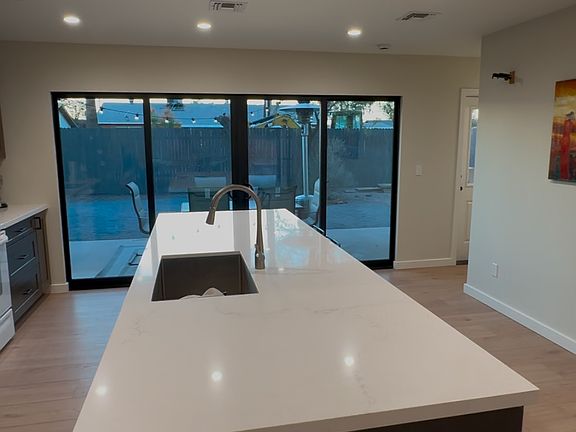 Modern Elegance: The entire home has been recently remodeled, boasting a modern, open-concept living space with a stunning kitchen featuring a large quartz island. Large windows, glass patio doors create natural light from sunrise to sunset.