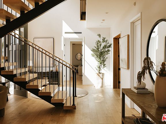 Perfectly positioned on one of Sunset Park's most coveted streets, this beautifully reimagined traditional radiates warmth and light, embodying the timeless sophistication of Santa Monica living. Step inside to discover a dramatic double-height foyer that sets the tone for the rest of the home. The main level features a spacious office, a full guest suite, and a sunlit living room that flows effortlessly into the dining area and chef's kitchen. Walls of glass open to the oversized backyard, creating a seamless indoor-outdoor connection ideal for entertaining or quiet relaxation. Outside, a private sanctuary awaits, complete with a built-in BBQ, outdoor shower, expansive lawn, and a sparkling pool with a retractable cover for year-round enjoyment. Upstairs, the serene primary suite captivates with a cozy fireplace, a massive walk-in closet, and a spa-like bathroom that is filled with an abundance of natural light. Glass doors reveal a large private deck with breathtaking ocean views, making it an ideal spot to unwind and watch the sunset. Two additional bedrooms complete the upper level, each filled with natural light, high vaulted ceilings, and charming details like a built-in library or a hidden loft that kids will love. Filled with light, warmth, and thoughtful design, this home offers the perfect setting to create lasting memories. A true Sunset Park gem, 1726 Pier Street is where comfort, beauty, and community come together.