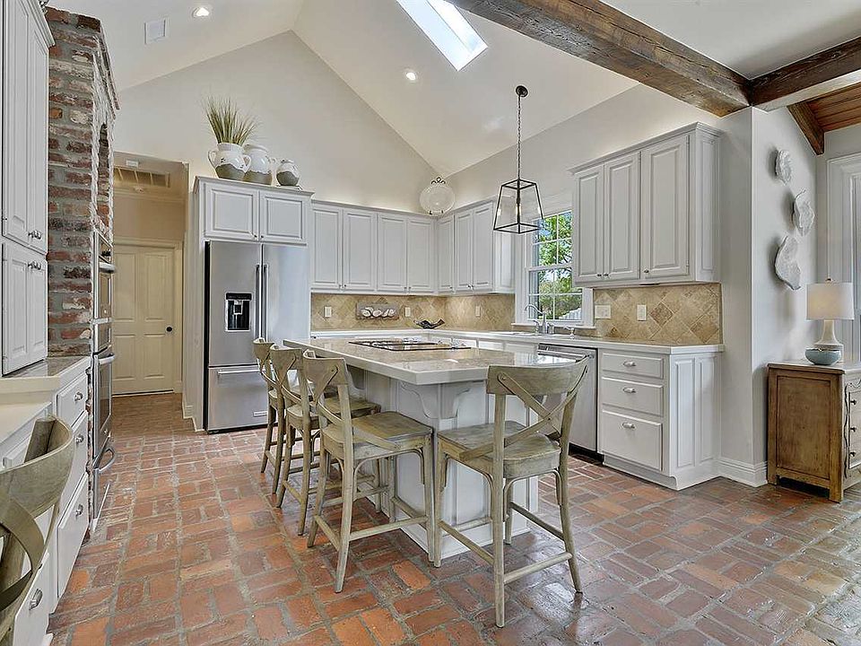Wonderful quality built home in the desirable neighborhood of Woodchase. This home has 5BR/4BA, 3,587 sq ft. Four of the bedrooms are downstairs with 1 large bedroom and bath upstairs. This transitional style house is perfect for entertaining or a family. As you enter the large foyers the nail down pine floors and designer lighting are breathtaking. Formal dining room on your left. Formal living room has views of landscaped and fended in backyard. 10-foot ceilings with triple crown molding, custom drapes and gas fireplace. As you enter the kitchen, the spacious keeping room has gas fireplace and St. Louis Brick flooring. The gourmet kitchen has tons of cabinets, eat in island, exposed cypress beams, vaulted ceilings and Kitchen Aid appliances including new ice machine, warming drawer, oven, microwave, new dishwasher and Jenn -Air cooktop. Off the kitchen is a butler's pantry/dry bar. Home has a triple split floor plan. One guest room off the kitchen. Guest bathroom has been completely redone with furniture style cabinet, designer lighting and mirrors. Master bedroom is large enough for separate sitting area, three windows with views of backyard, custom drapes. Master bath has his/her vanities, jetted tub and separate shower. Large walk in closet. Two more bedroom off the formal living room with jack and jill bathrooms. These bathrooms have been completely redone with Quartz counter tops, tile floors, designer lighting, pulls and custom tile shower with seamless shower door. Finally, upstairs is an additional bedroom and full bath. Off the living room is a back patio perfect for entertaining, large fully fenced in backyard. Driveway is spacious allowing for parking for extra drivers. Additional pad poured behind garage. New 30-year architectural roof, new (2) hot water heaters, new insulated windows throughout, gutters, custom exterior metal awnings, professionally landscaped with irrigation and 5 exterior cameras. Home on St. Aloysius Bus Route