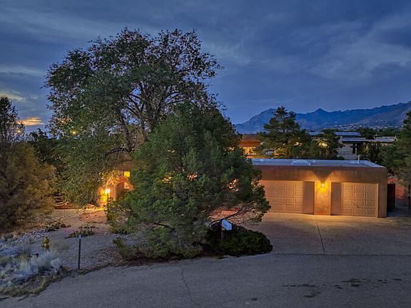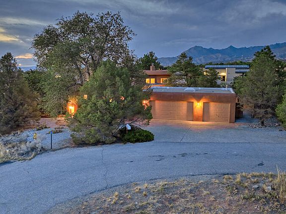 Sandia Heights Custom SW Casa On .67 Acre Panoramic Mountain View Lot! Enjoy City & Sunset Views. Panoramic Sandia Mountain Views Inside & Outside especially from Large Entertainers View Deck with Hot Tub. Inviting Foyer Overlooks Great room with Panoramic Floor to Ceiling Sandia Mountain View Windows, Kiva Fireplace, Raised T&G Beam Ceiling, Elegant Formal Dining Room w City &Sunset Views, Raised Ceiling & Custom Chandelier. Gourmet Kitchen with Lots of Custom Cabinets & Granite Tile Counters, Tile Floors & Backsplash, Island, Quality Appliances & Dining Area w Views. Four bedrooms w Ample Closet Space. Four baths. MBR Retreat with Sitting Room, Kiva Fireplace, View Windows & View Deck. MBR luxury Bath with jetted tub. 2 Walk in closets. 3 Car Garage. Updated Decorator Carpet Paint.etc