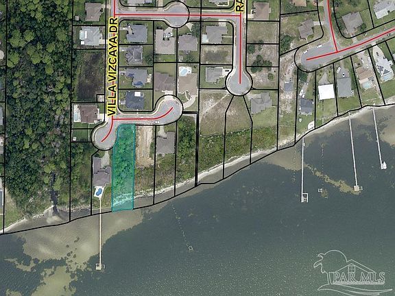 Beautiful high and dry waterfront lot in a desirable upscale neighborhood, Villa Vizcaya. This lot has had all of the underbrush cleared so that you can see the waterview that you will have from your home on this property. It has great elevation up by the road with a gentle slope down to the water. It has 81 feet of water frontage on the Santa Rosa Sound. There is a new house under construction to the east that already has a seawall built around it, so very little would be required to extend that seawall onto this lot. This is an ideal location to build your dream home on the water! Call today for more information!