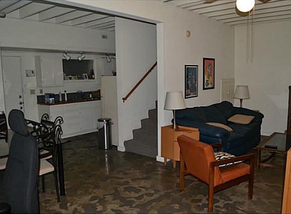 Huge custom 1 Bedroom 2bath Duplex w/ additional study / office room, in the Heart of Clarksville. Huge town home style floor plan, spacious fenced in patio area, modern lofted bedroom, stackable washer/dryer and updated finish out. Stained concrete, pine wood, and tile floors. Private off street parking & walking distance to Park. Please call with ?'s. Thanks for showing!