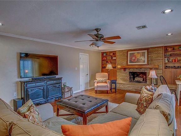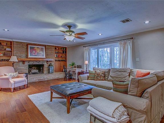 Check out this home in Nichols Hills for under $300k! The family room at the back of the house is quite large with a wood burning fireplace with stack stone, built-in bookcases and hardwood floors. The kitchen is open to the family room and right off the formal dining. There is a formal living and dining at the front of the house with great built-ins in the dining area. All three spacious bedrooms are located on the east side of the house. One bedroom has an attached bathroom with a shower and access to the family room. There is an additional hall bathroom with a bathtub. The laundry room is more like an additional room in the house, featuring a large closet and additional space for office area or workout space. There is a two-car garage with additional storage space. All windows have been updated throughout. Walk out to the concrete back patio, overlooking the yard with mature trees. Take a look and make this house your home!