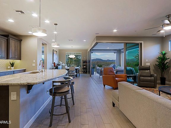 Imagine a life where everyday begins with stunning vistas of the Tonto National Forest and end in luxurious comfort. Welcome to your personal Resort oasis. This fully furnished turn-key home blends modern design and elegant living. Nestled just a short walk from Tonto National Forest offers immediate access to nature and adventure. This 2 bedroom 2 bath oasis offers plenty of space for entertaining and enjoyment. Step out into the backyard for breathtaking views and beauty. The private patio is equipped with new sunshades that can extend the greatroom into another space by opening the wall of glass doors. The primary ensuite offers sunrises over the mountains daily, with large shower, double sinks, and walk-in closet. The kitchen with granite countertops, pendant lights & Monogram applia This home is a must see.