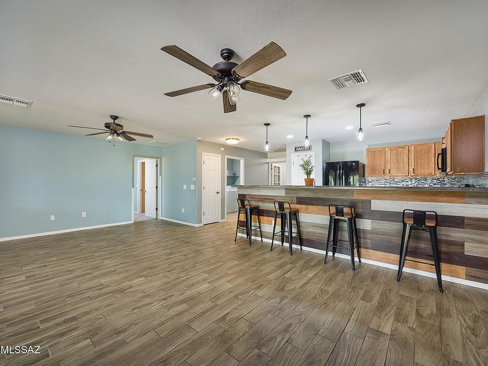 Enjoy stunning mountain views from this 3 bedroom, 2 bathroom home featuring a heated and cooled bonus room and a split bedroom floor plan. The kitchen offers brand-new countertops with a matching breakfast bar, perfectly designed for casual dining and entertaining. Out back, a view fence opens to state land, creating a private backdrop with natural beauty. The backyard is low-maintenance with gravel and pavers, while mature landscaping in both the front and back adds charm and shade.