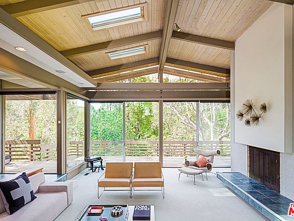 A RARE OPPORTUNITY TO ACQUIRE ONE OF RAY KAPPE'S SIGNIFICANT MID-CENTURY WORKS: THE STRIMLING HOUSE. A 1964 POST & BEAM RESIDENCE CENTERED ON NEARLY AN ACRE OF PRIVATE AND FORESTED GROUNDS. THE SIMPLE ELEMENTS OF WOOD AND GLASS ARE ARRANGED IN A MULTI-CANTILEVERED STRUCTURE THAT IS AT ONE-WITH THE OUTSIDE. THE PROPERTY IS TUCKED AWAY BEHIND A LONG-GATED DRIVE TO A GENEROUS MOTOR COURT. CLASSIC KAPPE FEATURES OF FLOOR TO CEILING GLASS AND ORGANIC FINISHES CREATE THE EXPERIENCE OF LIVING IN AN EXTRAORDINARY TREE-HOUSE. 4 BEDROOMS, 4 BATHS, OFFICE, MEDIA AREA, 2 FIREPLACES, TERRACES, LAGOON POOL AND LAWN SPREAD COMPLETE THE ARRANGEMENT. A THOUGHTFULLY RESTORED TROPHY PROPERTY.