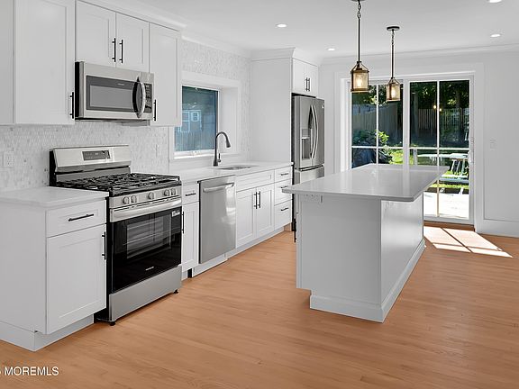 Welcome to the secret spot at the Jersey Shore! Less than 2 miles to Belmar beach, this TURN-KEY, NEWLY RENOVATED (down to the studs!) home boasts 4 bedrooms, 3 full baths. The Primary Suite is on the first floor, plus guest bedroom and full bath w/ radiant floor heat. The elegantly-finished, high+dry walkout basement contains 2 more bedrooms, full bath (also w radiant floor heat), a generously-sized laundry room plus living room. A private, roomy backyard with brand new composite deck just off the kitchen and primary bedroom offer plenty of outdoor living spaces. This house was renovated and re-configured by a local, well-established builder, who has worked in Wall Twp. and surrounding area for over 40 years.